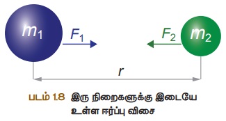 ஈர்க்கிறது. அவ்விசையானது அவைகளின் நிறைகளின் பெருக்கற்பலனுக்கு நேர்விகிதத்திலும், அவைகளின்