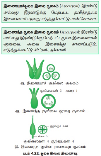 சூலகம் (syncarpous): இரண்டு அல்லது இரண்டுக்கு மேற்பட்ட சூலக இலைகளால் ஆனவை. அவை