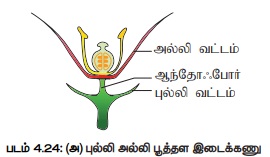 பூத்தள இடைக்கணு (Anthophore): அல்லி வட்டத்திற்கும், புல்லி
