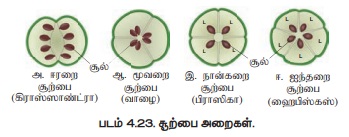 இதே போல் நான்கு அறை சூலகப்பை, ஐந்து அறை சூலகப்பைகளும்