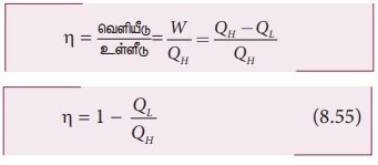 இங்கு QL ல் எதிர்க்குறியால் நாம் குறிப்பிடவில்லை . ஏனெனில் வெப்ப ஏற்பிக்கு வெளியேற்றிய வெப்பத்தின் எண்ணளவிற்கு மட்டுமே முக்கியத்துவம் அளிக்கப்படுகிறது.