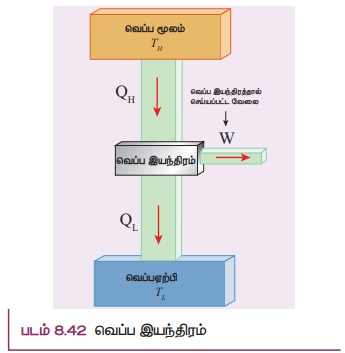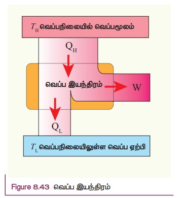 ஒரு வெப்ப இயந்திரத்தின் திட்ட வரைபடம் படம் 8.42 இல் காட்டப்பட்டுள்ளது.