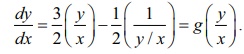 எனும் வகைக்கெழுச் சமன்பாடு சமப்படித்தான சமன்பாடு அல்ல (சரிபார்!) dy/dx = g(y/x) எனும் வகைக்கெழுச் சமன்பாட்டின் தீர்வு காண்பதற்கு v = y/x எனப் பிரதியிடுக. பின்னர், y = xv மற்றும் dy/dx = v+x dv/dx ஆகும். ஆகவே, கொடுக்கப்பட்ட வகைக்கெழுச் சமன்பாடு x dv/dx = f (v) – v என வடிவத்திற்கு மாறும். இச்சமன்பாட்டின் தீர்வினை மாறிகளைப் பிரிக்கும் முறையில் காணலாம். இதிலிருந்து பின்வரும் முடிவினைப் பெறுகிறோம்.