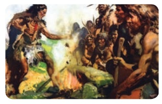 அந்தக் காலத்தில் மனிதர்கள் குகையில் வாழ்ந்து கொண்டிருந்தார்கள். கல்லிலும், எலும்பிலும்