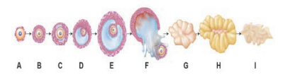 34. கீழேயுள்ள படத்தில் பெண்ணின் அண்டகத்தில் ஏற்படும் தொடர் நிகழ்வுகள் தரப்பட்டுள்ளன.