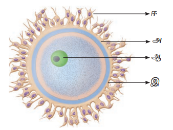 2. இவற்றைச் சுற்றி கிரானுலோசா செல்களும், தீகா அடுக்கும் காணப்படும்.