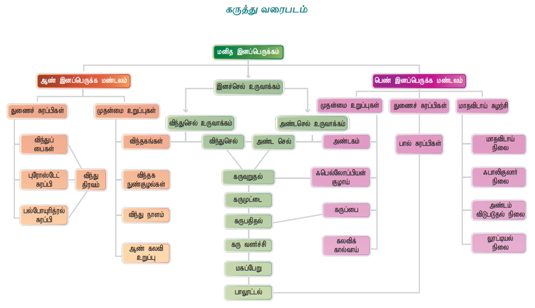 30. மனித விந்து செல் உருவாக்கம் மற்றும் அண்ட செல் உருவாக்கம் நிகழ்வுகளை வரைபடம் மூலம் விளக்குக.