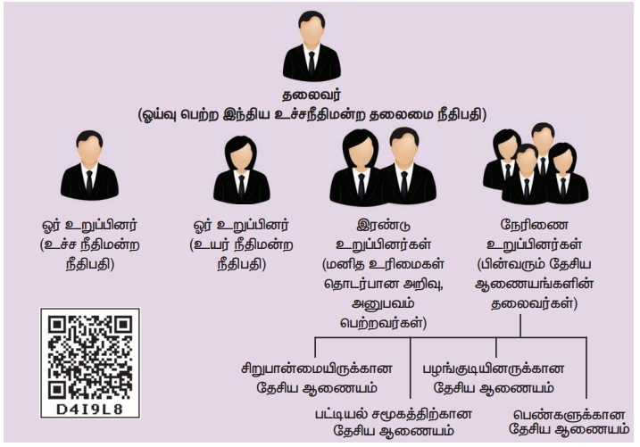 அமைந்துள்ளது. தேசிய மனித உரிமைகள் ஆணையம் என்பது ஒரு தலைவரையும் பிற உறுப்பினர்களையும்