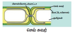 2. செல் சுவர் - இந்த சுவர் தாவர செல்லிற்குப் பாதுகாப்பு மற்றும் உறுதிப்பாட்டிற்கான சட்டகமாகச் செயல்படுகிறது.