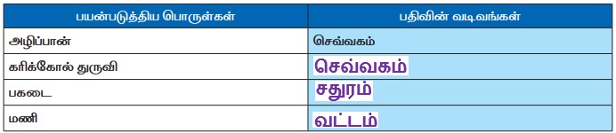 பயன்படுத்திய பொருள்கள் : பதிவின் வடிவங்கள்
