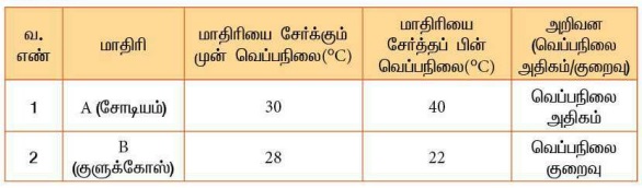 கொடுக்கப்பட்டுள்ள உப்பின் கரையும் தன்மையைக் கொண்டு வெப்ப உமிழ்வினையா? அல்லது வெப்பகொள்வினையா? என்பதைக் கண்டறிதல்.