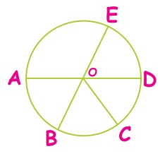 A, B, C, D, E ஆகியவை வட்டத்தின் மீதுள்ள புள்ளிகள் ஆகும். OA, OB, OC, OD மற்றும் OE ஆகியவை வட்டத்தின் ஆரங்களாகும். வட்டத்தின் ஆரங்கள் சம நீளமானவை (OA=OB=OC=OD=OE)