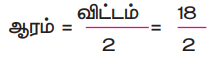 ஆரம் = விட்டம் / 2 = 18 / 2