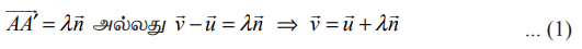 தளத்தில் பிம்பம் காண வேண்டிய புள்ளி (a1,a2,a3)−ன் நிலைவெக்டர்