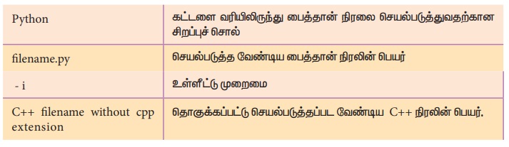 நாம் இப்பொழுது C++ நிரல் குறிமுறையைத் தொகுப்பதற்கான பைத்தான்