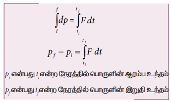 pf - pi = ∆p என்பது tf - ti = ∆t என்ற நேர இடைவெளியில் பொருளில் ஏற்பட்ட உந்த மாற்றமாகும். தொகையீடு என்பது கணத்தாக்கு எனப்படும். மேலும், இக்கணத்தாக்கு பொருளின் உந்த மாற்றத்திற்கு சமமாகும்.