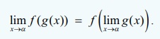 Lim gx→α (x) காணத்தக்கது மற்றும் இதன் மதிப்பு L என்க. மேலும் f (x) ஆனது x = L –ல் தொடர்ச்சியானது என்க. ஆகவே,