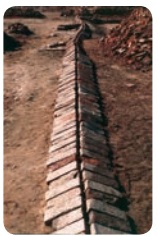 இரயில் பாதை அமைக்கும் பொருட்டு நிலத்தைத் தோண்டிய பொழுது அதிகமான சுட்ட செங்கற்கள்