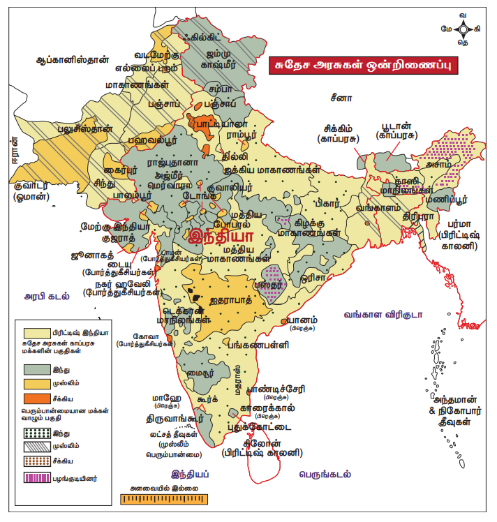 * நிர்வாகம் மற்றும் அரசியல் பகுதிகளை ஒன்றுபடுத்துவதில் சுதேச அரசுகள் இந்தியாவோடு இணைவதன் முக்கியத்துவம் குறித்து அறிதல்.