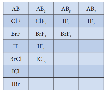 (v) இரண்டிற்கும் மேற்பட்ட வெவ்வேறு விதமான ஹேலஜன்கள் இணைந்து இச்சேர்மங்களை உருவாக்குவதில்லை.