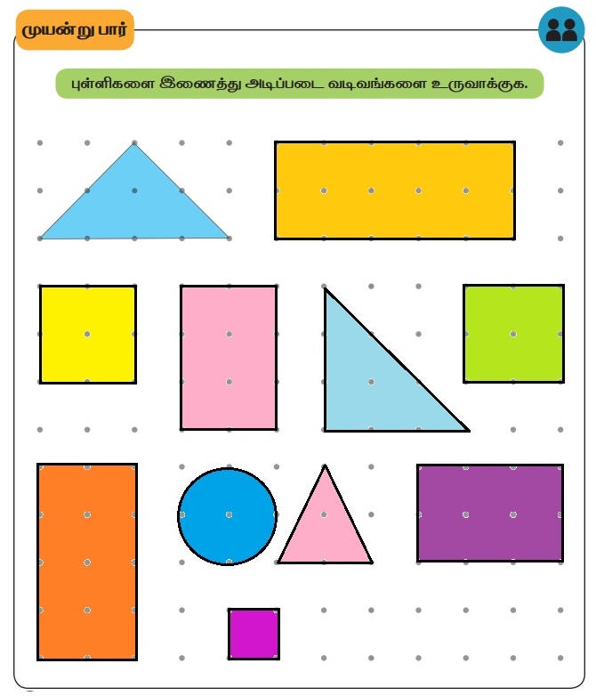 புள்ளிகளை இணைத்து அடிப்படை வடிவங்களை உருவாக்குக.