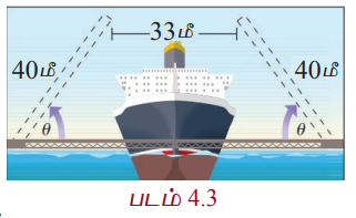 படத்தில் காண்பது போன்ற இரட்டைமடிப் பலகு இழுப்புப்பாலம் ஒன்றினைக் கருதுவோம். ஒவ்வொரு மடிப்பலகும் 40 மீட்டர் நீளம் கொண்டது. 33 மீட்டர் அகலமுடைய கப்பலொன்று பாலத்தைக் கடக்க வேண்டும். பாலத்தைக் கப்பல் கடக்க, ஒவ்வொரு மடிப்பலகும் திறப்பதற்கு ஏற்படுத்தும் மீச்சிறுகோணம் θ −ஐக் கண்டறிய நேர்மாறு முக்கோணவியல் சார்பு பயன்படுகிறது.