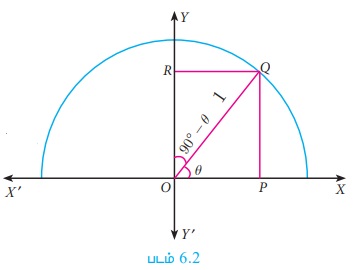 எனவே, PQ = OQ × sin θ = sin θ (ஏனெனில் OQ = 1)