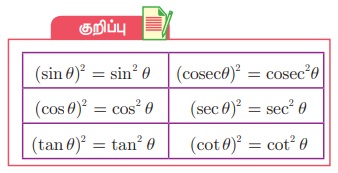 · முக்கோணவியல் விகிதங்களுக்கு இடையேயுள்ள அடிப்படைத் தொடர்புகளை நினைவுபடுத்துதல்.
