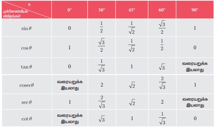 · முக்கோணவியல் விகிதங்களை நினைவு கூர்தல்.