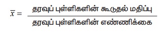 1. எல்லாத் தரவுப் புள்ளிகளையும் கூட்டி, தரவுப் புள்ளிகளின் எண்ணிக்கையினால் வகுத்தால் கிடைப்பது ____________.