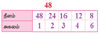 இதே செயல்பாட்டைப் பரப்பளவு 24 ச.செ.மீ மற்றும் 48 ச.செ.மீ உள்ள செவ்வகங்களுக்கும் செயல்படுத்துக.