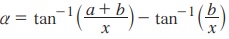 2. x மீட்டர் அகலமுடைய பாதையின் ஒரு புறத்திலிருந்து பாதையின் மறுபக்கம் அமைக்கப்பட்ட a மீட்டர் விட்டமுடைய வட்ட வடிவப் போக்குவரத்து சமிக்கையின் பச்சை விளக்கை ஒருவர் பார்க்கிறார். பச்சை விளக்கின் அடிப்பகுதியிலிருந்து பார்ப்பவரின் கண்ணின் கிடைமட்டக் கோடு வரையில் உள்ள உயரம் b மீட்டர் ஆகும். பச்சை விளக்கின் விட்டம் பார்ப்பவரின் கண்க ளில் தாங்கும் கோணம் α எனில் என நிறுவுக.