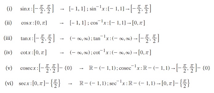குறிப்பு: (i) முக்கோணவியல் நேர்மாறு சார்புகளின் பண்புகள், வரைபடங்கள் மற்றும் தேற்றங்கள் ஆகியவற்றை மேல்நிலை இரண்டாம் ஆண்டில் படிப்போம்.