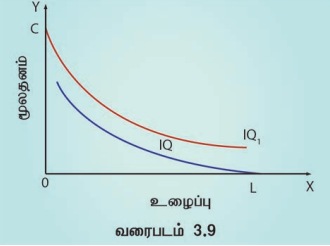 மேற்காணும் அட்டவணை 3.2-ன்படி உழைப்பு மற்றும் மூலதனத்தின் ஐந்து இணைப்பு கலவை ஒரே அளவிலான உற்பத்தியை தருகிறது. அதாவது 400 மீட்டர் துணி.