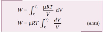 சமன்பாடு (8.34)வெப்பநிலை மாறா அமுக்கத்திற்கும் பொருந்தும். ஆனால் வெப்பநிலை மாறா அமுக்கத்தில் Vf/Vi < 1. எனவே ln(Vf/Vi) <0