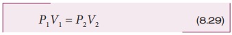 வாயு ஒரு சமநிலை நிலையிலிருந்து (P1, V1) மற்றொரு சமநிலை நிலைக்குச் (P2, V2,) செல்லும் போது பின்வரும் தொடர்பு பொருந்தும் என்பதே.