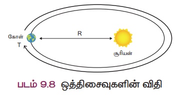 சூரியனின் மையம் ஒரு குவியத்தில் உள்ளவாறு, நீள்வட்டப் பாதையில் கோள்கள் சூரியனைச் சுற்றி வருகின்றன.