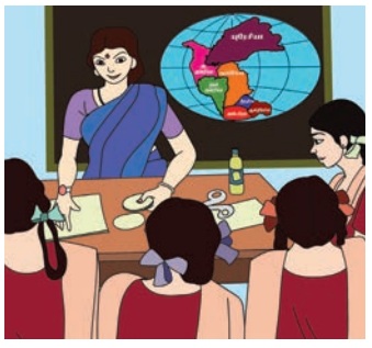 ஆசிரியர் மாணவர்களை குழுவில் அமரச் சொல்லி செய்யவிருக்கும் செயல்பாட்டினை விளக்குகிறார்.