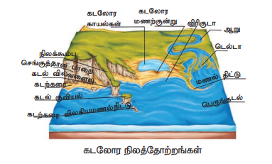 • கடல் அலைகளின் செயல்பாடுகளால் உருவாகும் நிலத்தோற்றங்களை கண்டறிதல்