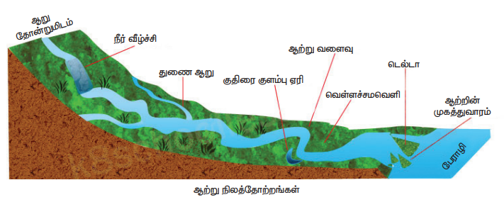 3. ஆற்று முகத்துவாரம் - River mouth - ஆறு ஒரு ஏரியிலோ, கடலிலோ அல்லது ஒரு பேராழியிலோ கலக்கும் இடம் ஆற்று முகத்துவாரம் எனப்படுகிறது.