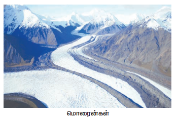 • பனியாற்று படிவுகள் மொரன்கள் எனப்படுகின்றன.