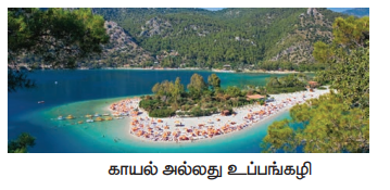 10. காயல் - Lagoon - கடற்கரையிருந்து ஒரு பகுதியாகவோ அல்லது முற்றிலுமாக பிரிக்கப்பட்ட ஆழம் குறைவான நீர் தேக்கம் லகூன் எனப்படும் காயல்கள் அல்லது உப்பங்கழிகள் எனப்படும்.