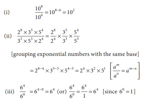 2. அடுக்கு வடிவ எண்களின் வகுத்தல் (Division of Numbers in Exponential form)