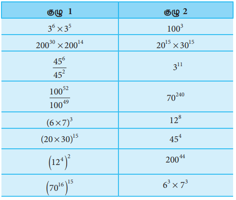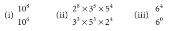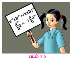 (iii) 725 ÷ 95 = (72÷9)5 = 85 [ஏனெனில், am / bm = (a / b)m ]