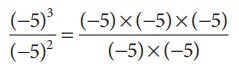 (−5)3 / (−5)2 = [(−5) × (−5) × (−5)] / [(−5) × (−5)]
