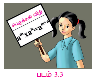 am = a×a×a×.......×a (m முறைகள்) மற்றும் an = a×a×a×...... ×a (n முறைகள்)