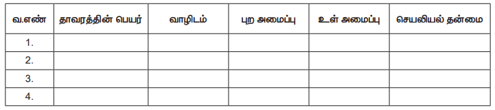 நோக்கம்: கொடுக்கப்பட்ட தாவர மாதிரிகளைக் கண்டறிந்து, அவற்றின் தகவமைப்புகளைப் பட்டியலிடுக.