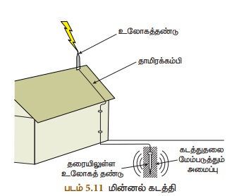 தண்டுடன் இணைக்கப்பட்டிருக்கும். மின்னல் ஏற்படும்போது அது கட்டடத்தின் மேற்பகுதில்