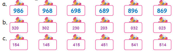 1. கொடுக்கப்பட்டுள்ள இலக்கங்களை ஒரே முறை மட்டும் பயன்படுத்தி அமைக்கக்கூடிய அனைத்து மூன்றிலக்க எண்களையும் பட்டியலிடுக