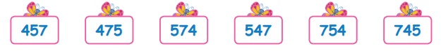 4, 5 மற்றும் 7 ஆகிய 3 எண்களை கொண்டு அமைக்கக்கூடிய அனைத்து மூன்றிலக்க எண்களையும் பட்டியலிடுக.